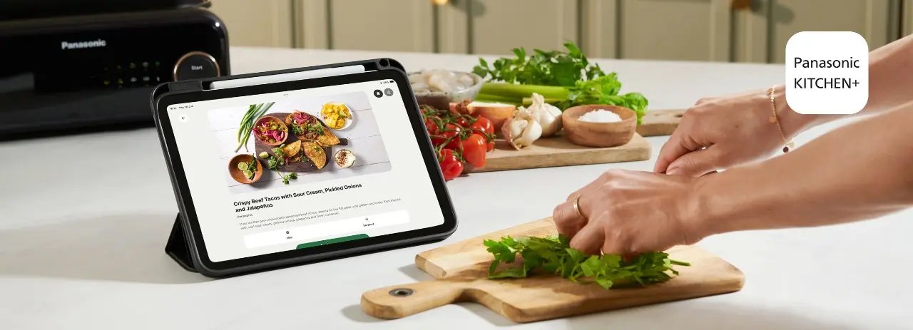 Zoznámte sa s aplikáciou Panasonic Kitchen+, vaším spoločníkom pri varení, vďaka ktorému budete tráviť menej času v kuchyni a viac času pri stole.