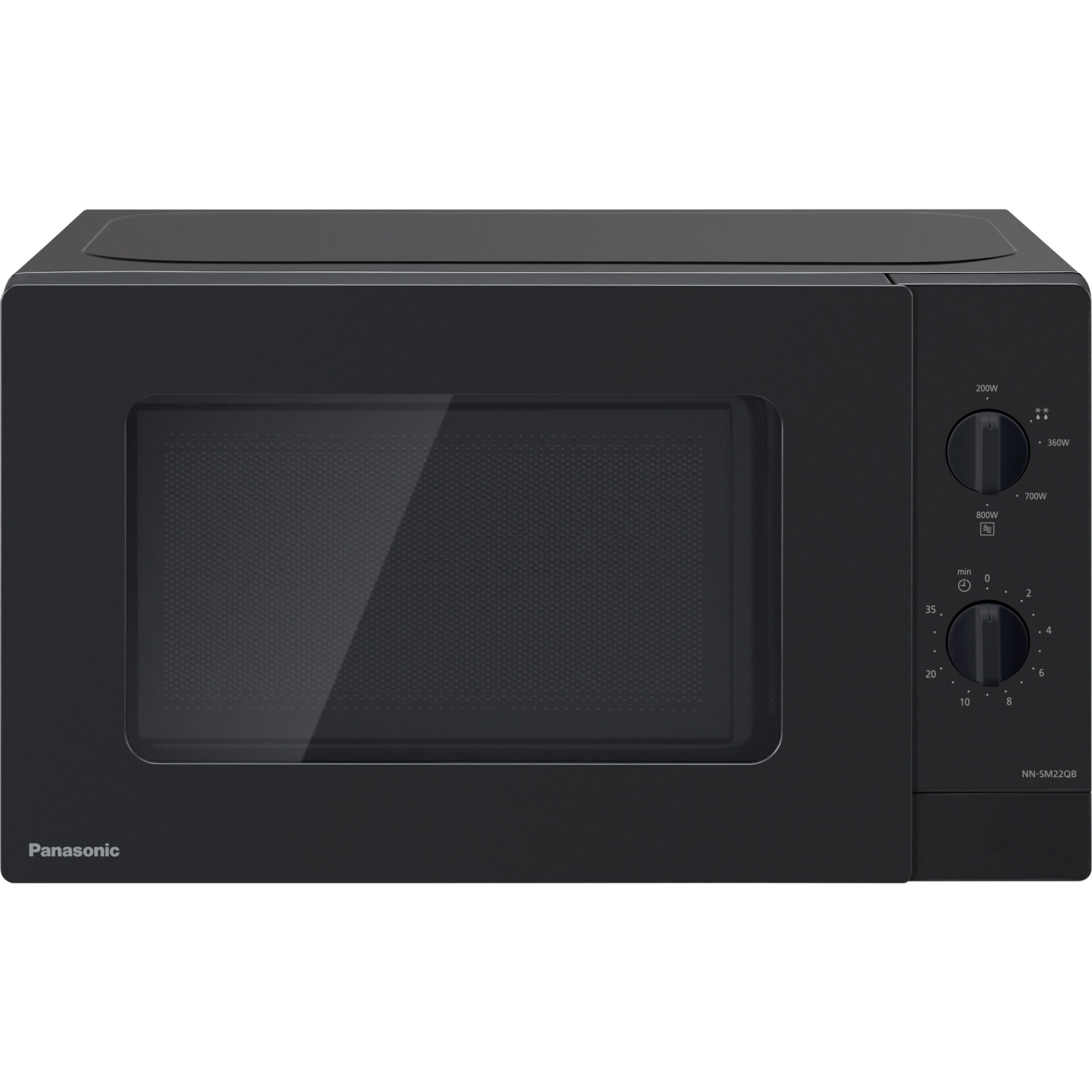 Panasonic NN-SM22QB kompaktná mikrovlnná rúra (800W, 5 úrovní výkonu, otočný tanier s priemerom 255 mm, ovládanie otočným voličom), čierna